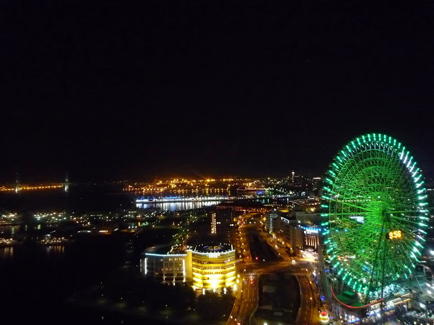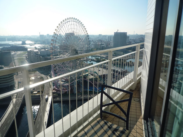 バルコニーから観覧車が目の前に見えます。観覧車のライトアップが消える瞬間を目撃しました。記念日滞在ということでケーキのサービスもありました。