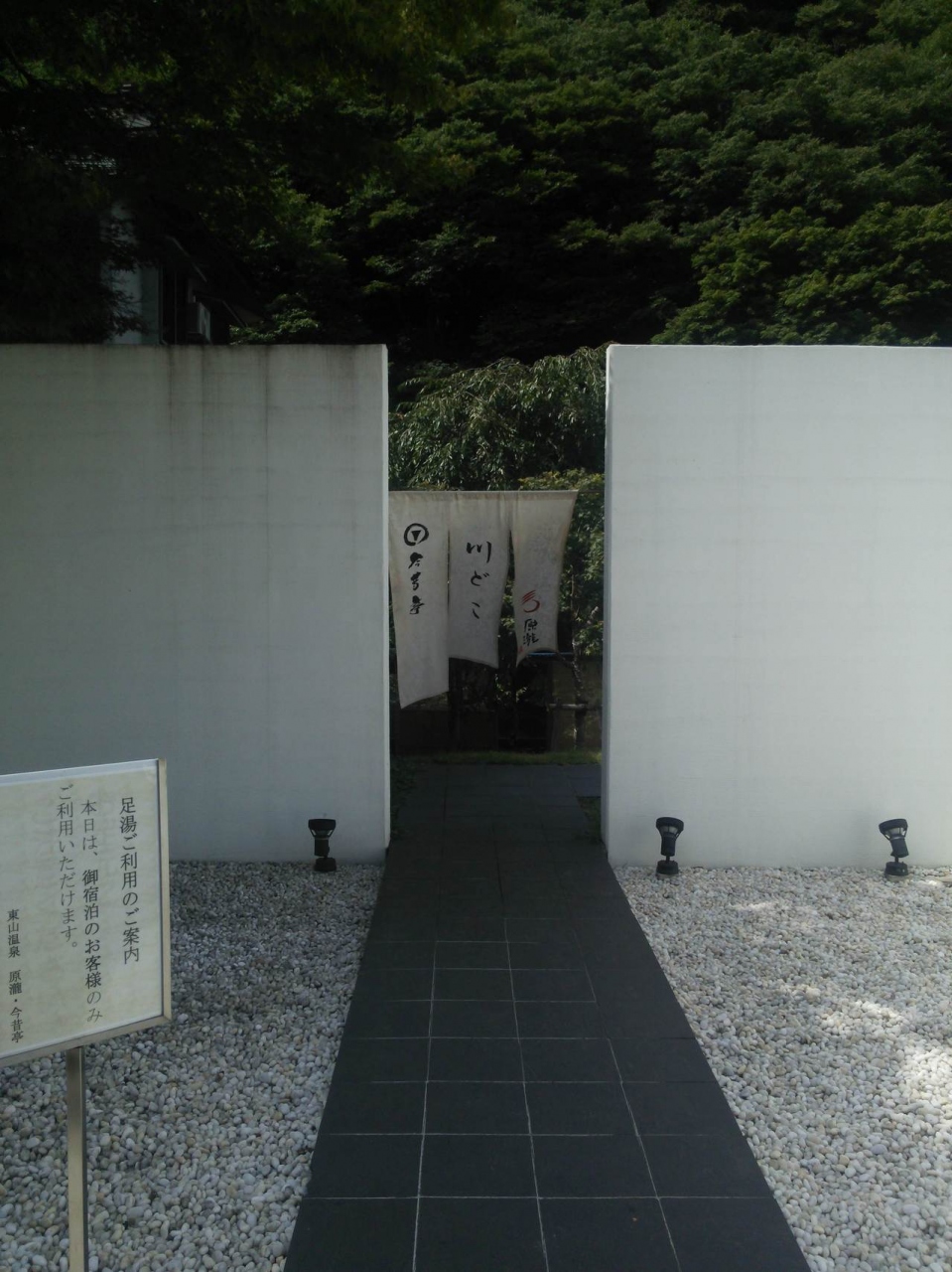 のれんのかかった上流側には足湯もあり、のんびりと楽しめます。