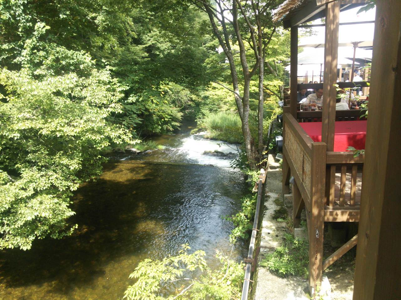 川沿いに段々の階段状になった升席があり、さわやかな風が席に流れて涼しく食事をいただけました。