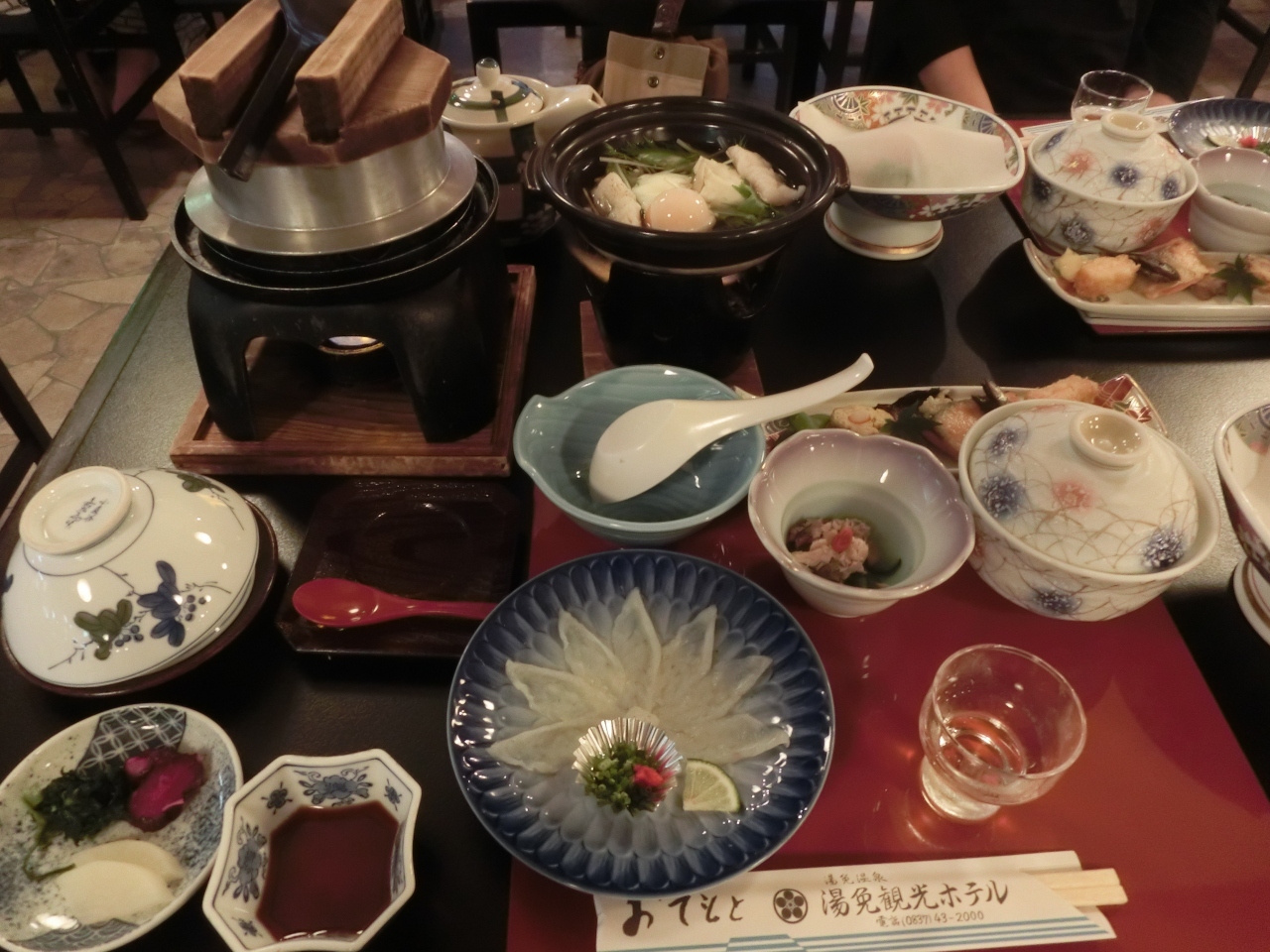 秋吉台と萩を観光するため、ちょうど真ん中あたりにある湯免観光ホテルを選びました。観光地へのアクセスは本当に良かったと思います。ホテルは外観もロビーも古い感じがしました。お部屋は10畳と広々しており、清掃も行き届いていてきれいでした。料理はあまり期待していなかったのですが、思っていた以上に量もたくさんあり、おいしかったです。お風呂もあまり広くはありませんが、きれいな感じでよかったです。