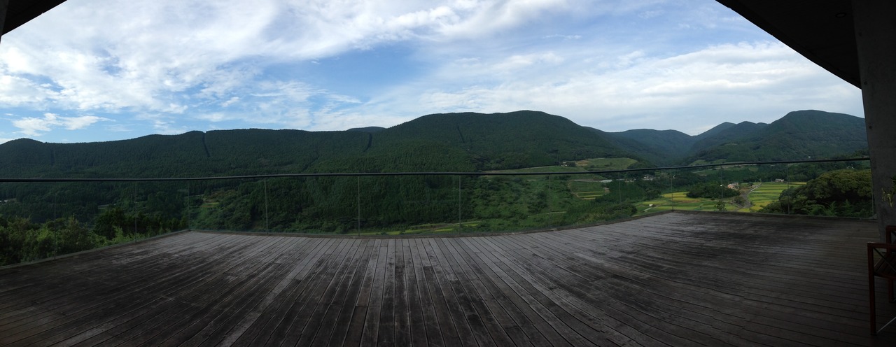 念願の山暖簾に宿泊。黒川紀章設計の公共の宿、とてもシンプルな建築プランですが、さすが黒川紀章、建物に迫力あります。周囲は見渡す限り深い緑。部屋数も少ないので、温泉もゆっくり入れます。従業員の方もみんな親切で、お料理も優しく美味でした。