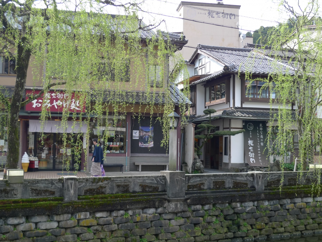 桜が大変綺麗な季節に訪れました。城崎温泉街裏側の桜並木は大変綺麗で、夜桜用のライトアップもされています。城崎温泉は柳が有名ですが、桜と柳の調和も何とも言えない風情を感じます。権左衛門の宿は正面から見るととても狭く感じますが、奥行きが長く思った以上に部屋数もあるようです。心配した駐車場も裏に広くあり、正面から想像した雰囲気と全く違います。土産廻り、駅、外湯巡りには全く文句の付けようが無い場所にあります。部屋は少し古い木造で決して立派とはいえません。又建て増しを繰り返したようで複雑な間取りで迷子になりそうです。内湯は決して広くはありません。温泉組合の話では外湯にお湯を沢山使う事で、内湯への供給湯量の制限があるそうです。食事は何も言わなくとも「但馬牛」が出てきますが大変柔らかく美味しく頂きました。それ以外にもカニ、魚も豊富でした。城崎温泉へ来た時は是非外湯巡りをオススメします。
