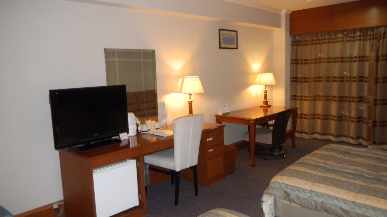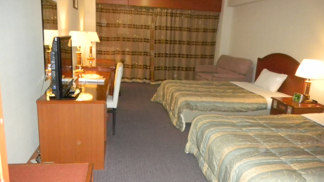 ビジネスホテルなのに部屋が広い!33?もありました。ベッドはダブルサイズが二つ!