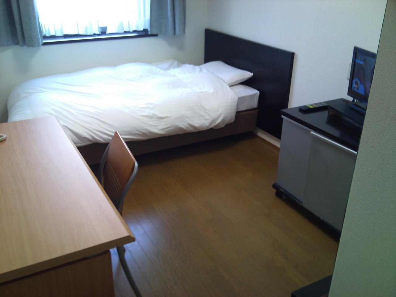部屋の作りが、ワンルームマンション。部屋のなかに普通のベットと机、テレビのサイドボードが置かれているのみ。電源やアンテナのコンセントがおかしな所についているので、壁からサイドボードまで、長さが足りない延長コードが剥き出しで配線されています。しかもベットからテレビが見れません。カーテンは寸足らずで、ベットに横になると外が見えます。電気のスイッチやエアコンのスイッチもベットから遠くいちいち起きて行かなくてはならないのが難点です。床はフローリングで、夏は涼しそうですが冬は底冷えしそうです。福岡ドームの近くですが、周りになにも無く、繁華街には気合いを入れて出かけなければなりません。素泊まりには良いのではないでしょうか?