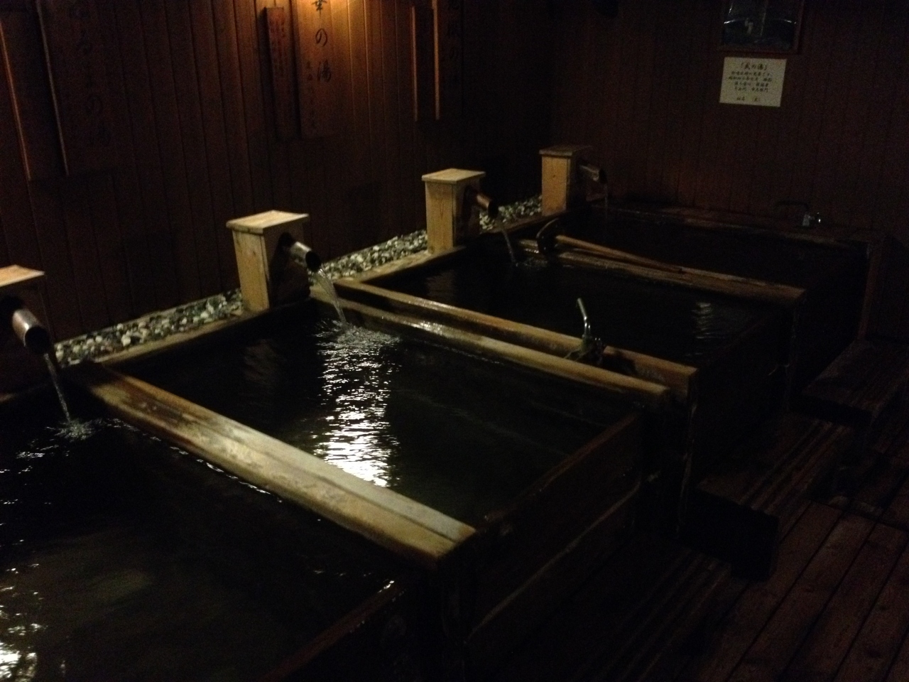 そのほかにも露天風呂、大浴場、貸切風呂と合計6か所14湯船だったけな?