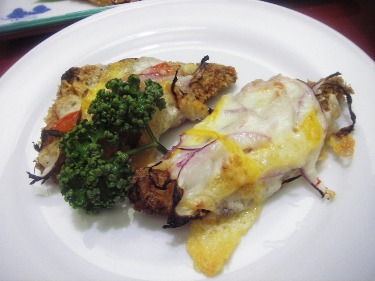 魚のフライの上にピザソースがのってる、洋風の料理もあってバラエティ豊か。