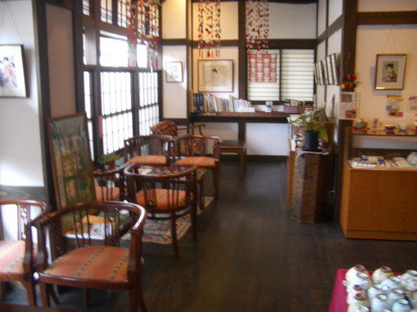 大正モダン風のロビー。玄関には竹久夢二の絵が掛けてあります。