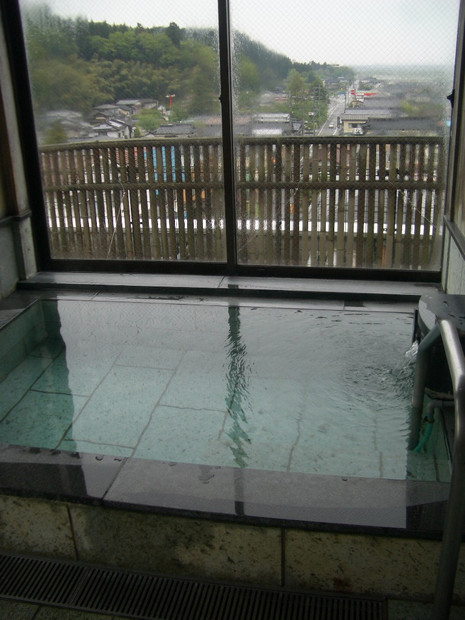 中でも5階にある展望風呂「まんてん」は展望風呂というだけあって、3つの中で一番眺めの良いお湯で、晴れていれば鳥海山を一望できるロケーション。浴槽サイズは2畳ぐらい。貸切風呂なので充分な広さです。