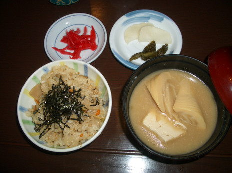 この時期の珠玉やさんの季節の基本プランは日本海で獲れる新鮮な旬の魚介類を中心に、宿自慢の創作郷土料理がずらり。更にこの季節限定、孟宗筍のお料理を2品追加しました。