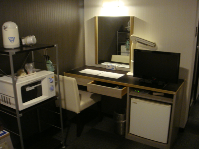 難波にあるホテルと言うことで、繁華街のホテルと思っていましたが、周りはマンションなどが多い住宅地の中のホテルでした。難波駅からは徒歩10分程、周りには飲食店やコンビニもなく、ちょっと不便です。ただ客室は非常に広く、マンションのワンルームのような感じです。また電子レンジも備えており、長期滞在者は便利でしょう。さらに浴室のバスタブも家庭用並に深く、湯船に浸かる方は満足できます。これで4000円はありがたいです。