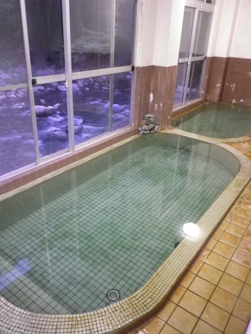 静岡・山梨の出張で利用しました。前日は清水のビジネスで泊まって素泊まりで¥7000くらい、ここは源泉かけ流しの2食付きで¥8000ですから十分な価格です。建物は30年40年近く経つのであろうか?あちらこちら老朽化しているのは否めない。一人泊でこの金額で多くを求めるのは酷であろう。ただオーナーさんのおもてなしの努力は随所に見られる。トイレはウォシュレット付きに改修されたり、料理についてはとにかくうまかった。家庭料理風でありながら、しっかりと手の込んだ様子がうかがえる。昼間はお食事処も経営しているので料理については多少自信があるのであろう。◎である。湯葉に川魚の塩焼き、馬刺し、煮物、酢の物は山の幸をふんだんに使用する。舞茸や山菜主体の釜飯風の混ぜご飯も私の好きな料理である。話し相手のいないひとり旅でも十分満喫できた。食がうまいので酒がどんどん進む。食後はもう一度風呂に入り下部温泉のやや硫黄臭のする透明でぬめり感のある素晴らしい温泉に入る。このささやかな贅沢がしあわせを感じる。温泉は湯量が多く24時間掛け流し、先週四国の某有名な温泉にも行きましたがはっきり言ってこちらの温泉の方がすばらしいです。色々といいことも書きましたが、部屋は多少の隙間がありこの夏の時期か虫がたくさん入ってきた。下部川沿いの展望の良いへやでしたが、壁が薄いせいか川の音が川の騒音になって、夜何度か目を覚ましてしまった。ただ山側はあまり景色が良くなかったのでこのあたりあどちらかをとるかということである。