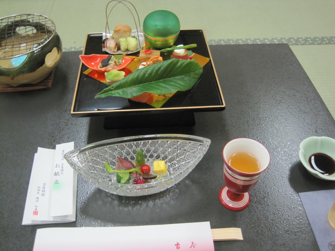 部屋は庭付きで露天風呂のついた2部屋の和室。食事は別の部屋でしたが、とても繊細な懐石料理でした。