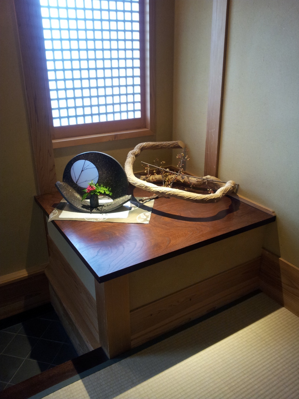 入り口の横に足が悪い方のためにカートが用意されていましたが、カートがどこまで入れるのかはわかりません。離れに行くには階段を上って行ったのですが、カート用の別の道があったのかな?