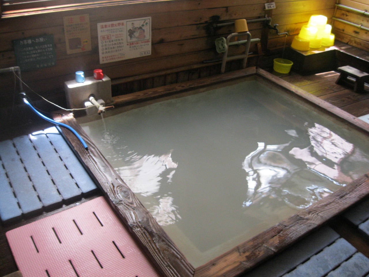 源泉100%の掛け流し、白濁した温泉です。