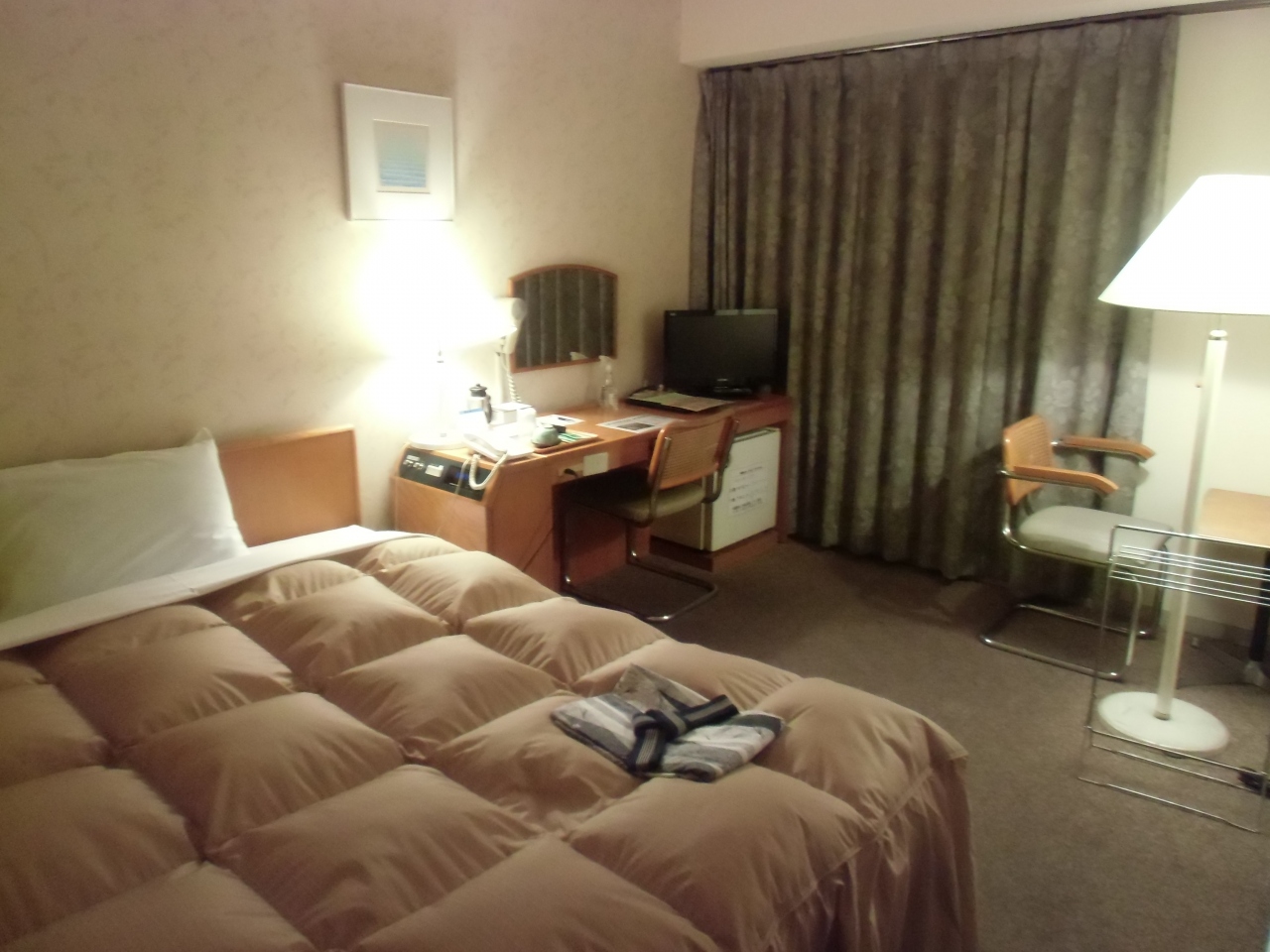 このエリアでは、有名見たいです。全体的に古めですが、部屋の電気のスイッチ、珍しい物見つけました。昔はこんなのかな?って思わず写真とりました。部屋は充分ひろいのですが、ベッドでごろ寝しながら、テレビが見れない。頭方向と同じ壁側にてれびがありました。標準でLAN環境があるのは、今時かなって、思います。ただし有線です。