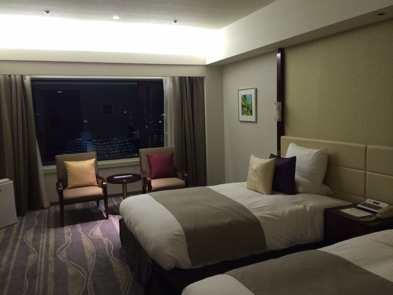 お部屋はこんなものか…と思いましたが、ロビーでの対応してはやはりオークラ、心地よいですね。タクシー降り場には、ベルマンが常駐していますし、高い吹き抜けと、立派な中庭、チェックインはスムーズですし、連れ合いの誘導も自然で重苦しくない、チェックアウトの時も、エレベーターを下りてカウンターに向かう間に僅かな距離も荷物を持ってくださいます。たくさんお客様はいらっしゃるのに、それぞれにきちんと対応されており、快適な時間を過ごさせていただきました。