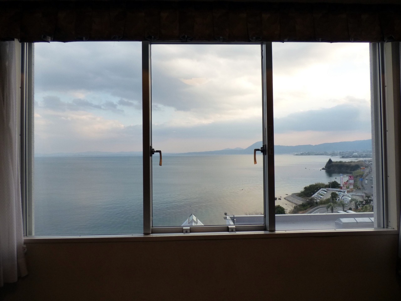 海側のお部屋からは別府湾の眺めが、山側の部屋からも一部海と日豊本線が眺められます。