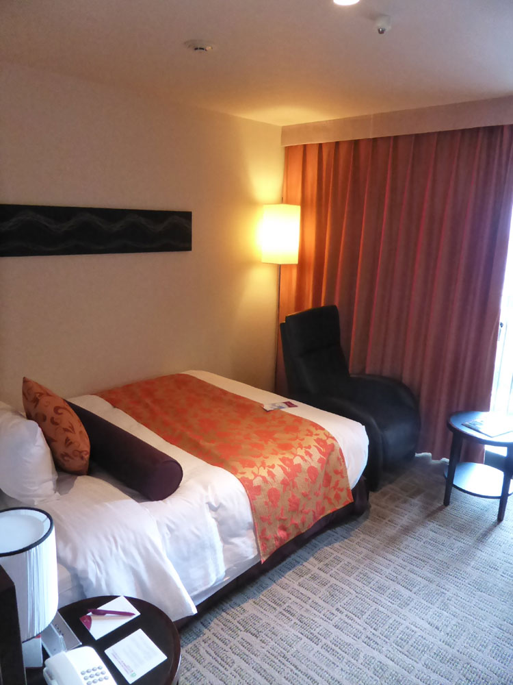 客室は最上階の7階でグラバー邸を望む眺望は良かったです。また、シングルルームで部屋自体は広くはなかったですが、微妙な場所に置かれたソファーは座ってみると大変快適で、リクライニングをすると自然に寝られそうで大変気に入りました。シングルの部屋ですので、こういったものを置くとというコンセプトが素敵です。デラックスルームにした甲斐がありました。クラウンプラザのお休みキットも設置されており、行き届いていると思います。