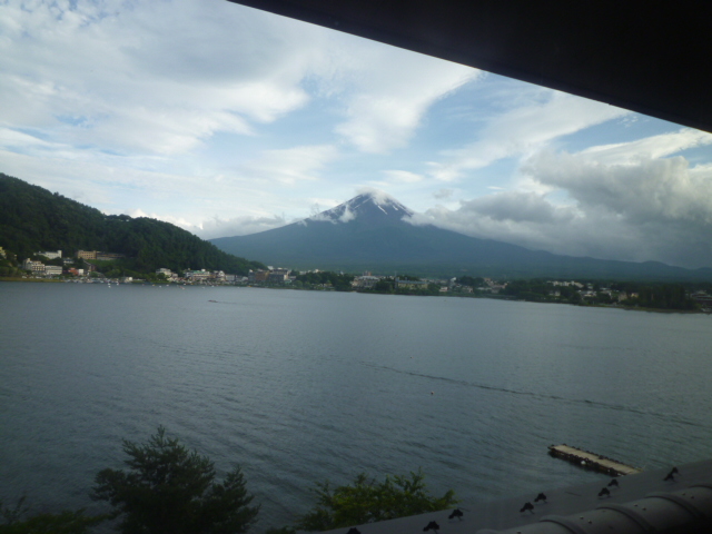 部屋へ案内され、窓からの景色をみた瞬間、みんなで「うわぁー!!」と感激しました。窓がとても大きく、そこからの眺めはまるで1枚の絵のようでした。湖にうつる富士山もとてもきれいでした。