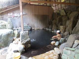 お宿は前後一方通行の道の真ん中にあり帰りはぐるっと一周する事になり、駐車場は上下に数台止められるスペースがあります。パンフレットやネットでは日帰り入浴は500円と記載してありましたが700円だったので、土日は700円なのかもしれないです。露天風呂は外にあり、天然記念物に指定されている立久恵峡を眺めながら入れる男女別の露天風呂があります。露天風呂は広めで5~6人はゆったり入れる広さで、シャワーは外に4箇所ありシャンプーリンスボディソープ完備していました。泉質が硫酸塩泉で動脈硬化・傷・美肌に良いそうです。肌の脂分をとるそうでニキビにもよく肌が少し滑滑な感じでした。露天風呂の前には立久恵峡の景色とエメラルドグリーンで綺麗な川が流れていて絶景でしたが、湯につかってしまうと目隠しの岩や策が邪魔で見えなくなり少し残念でした。紅葉のシーズンにはもっとすばらしい景色になりそうです。