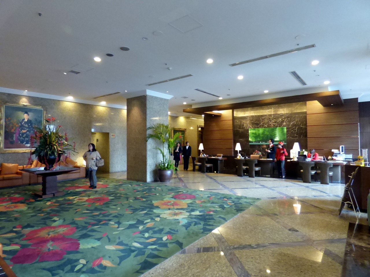 東シナ海から吹きつける潮風にさらされて、外観はチョッと不気味になりつつありますが、ロビーは広く明るく豪華です。