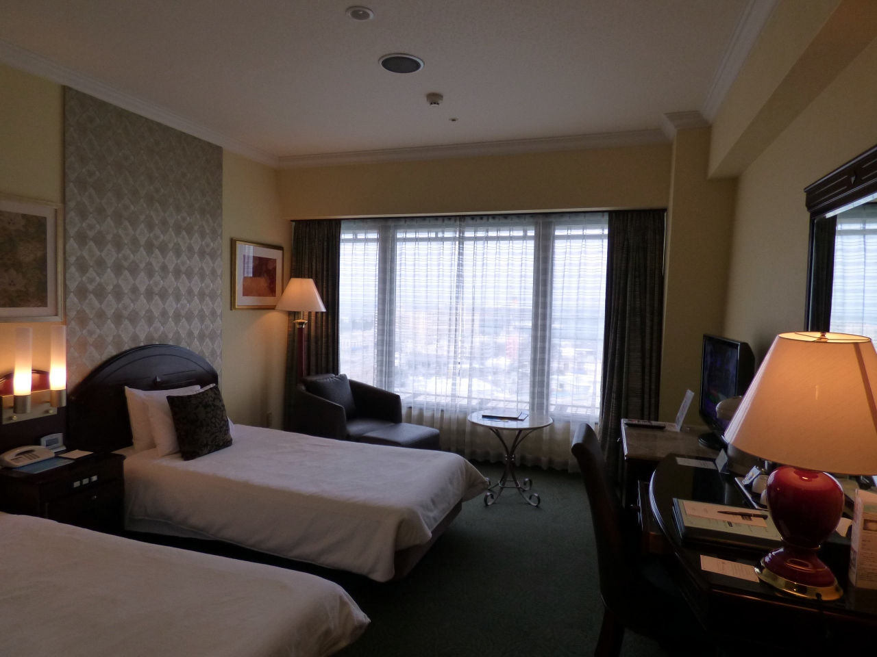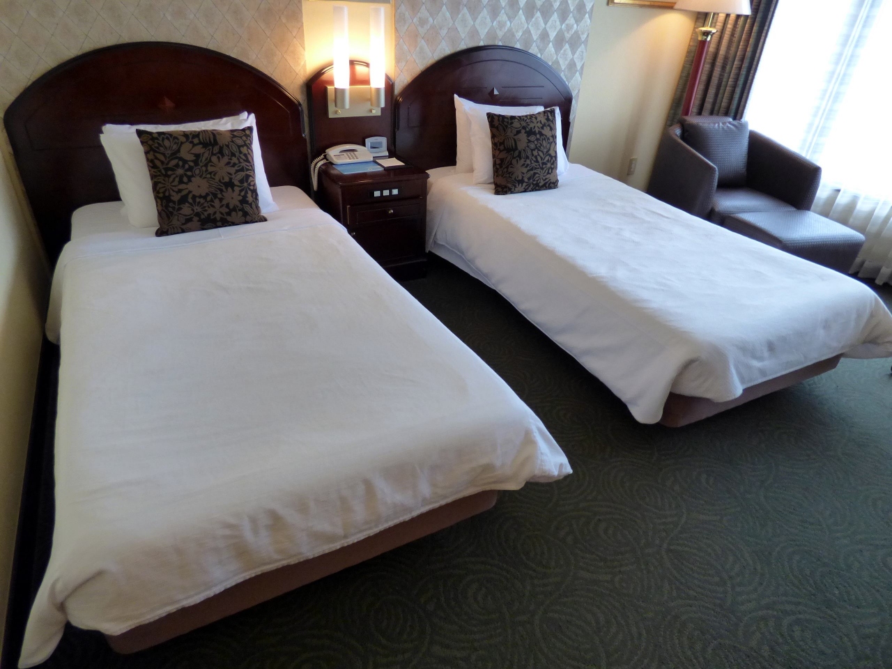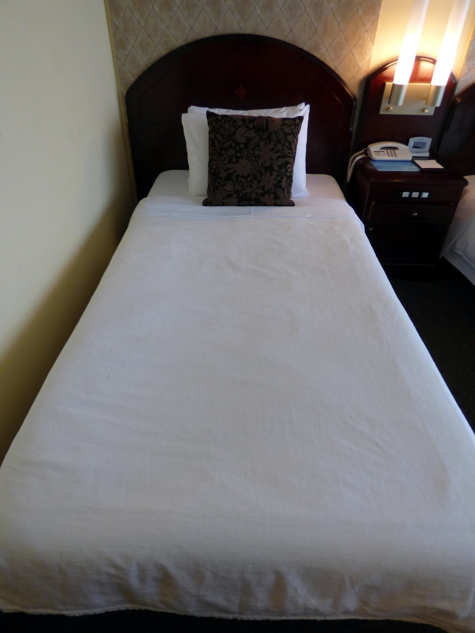 アサインされた10階のポートビュースタンダードツイン禁煙ルームは、小ぶりなシングルサイズのベッドでしたが、清潔で広さもギリギリ我慢できるものでした。