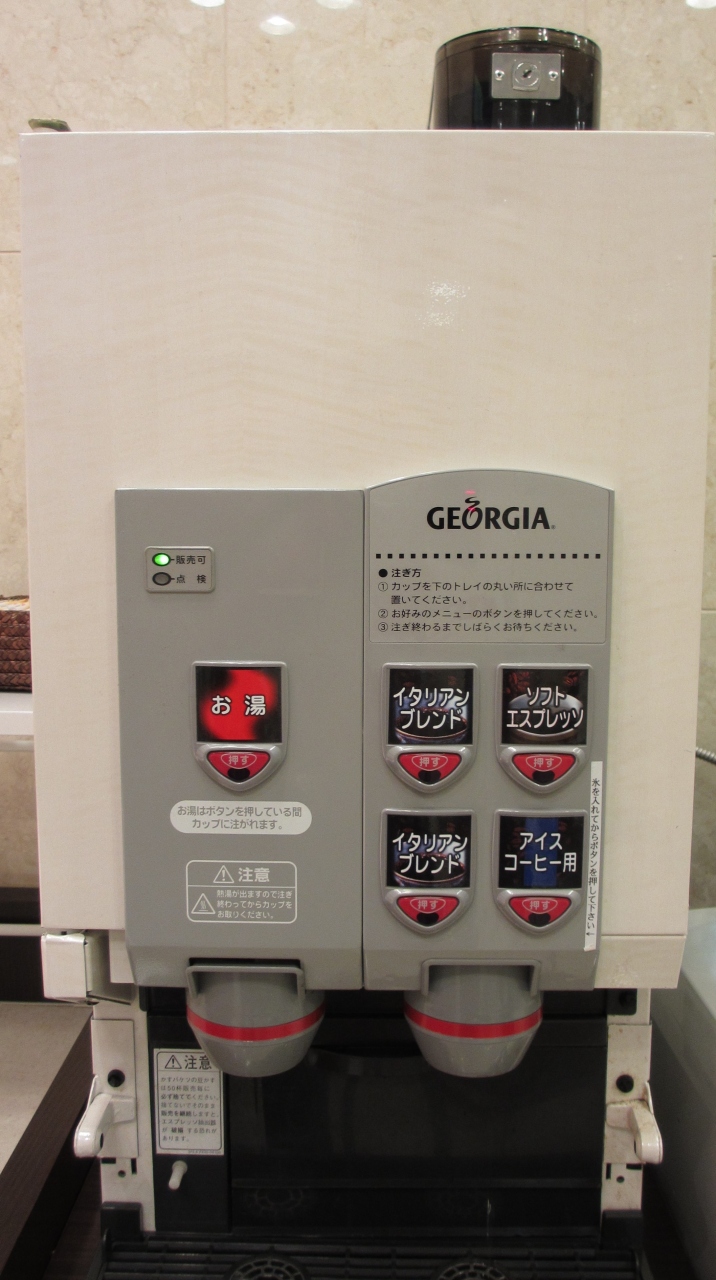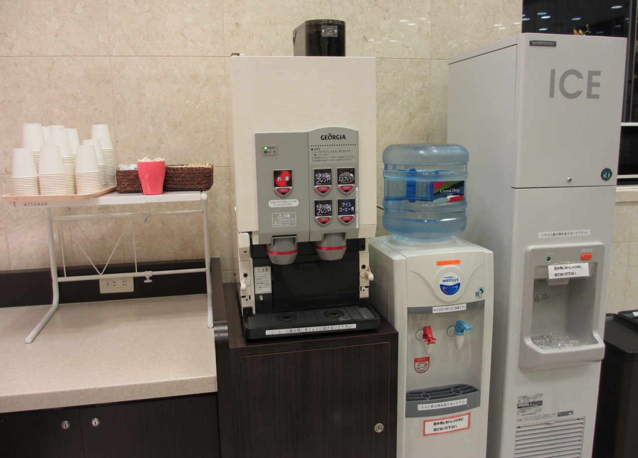 1階には無料の飲料水、コーヒーサーバーもありました。