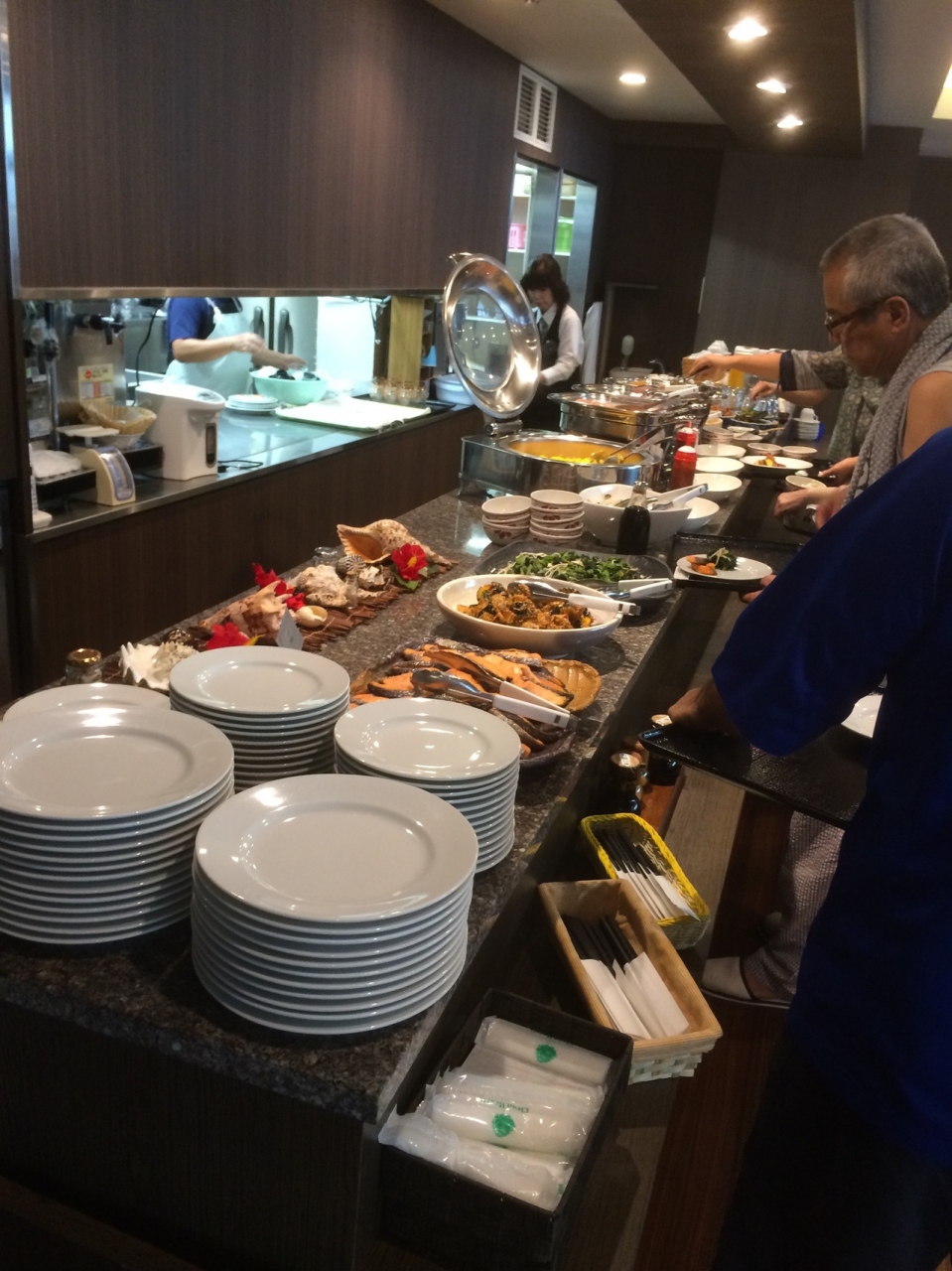 フロントの方は人によってですが感じがいい人とあんまり善くない人が、お風呂は大浴場があって良かったです。部屋はそんなに広くなくベットも良い硬さです。朝食は種類もそこそこあって名物の鶏飯もありますが出汁が薄目でした。