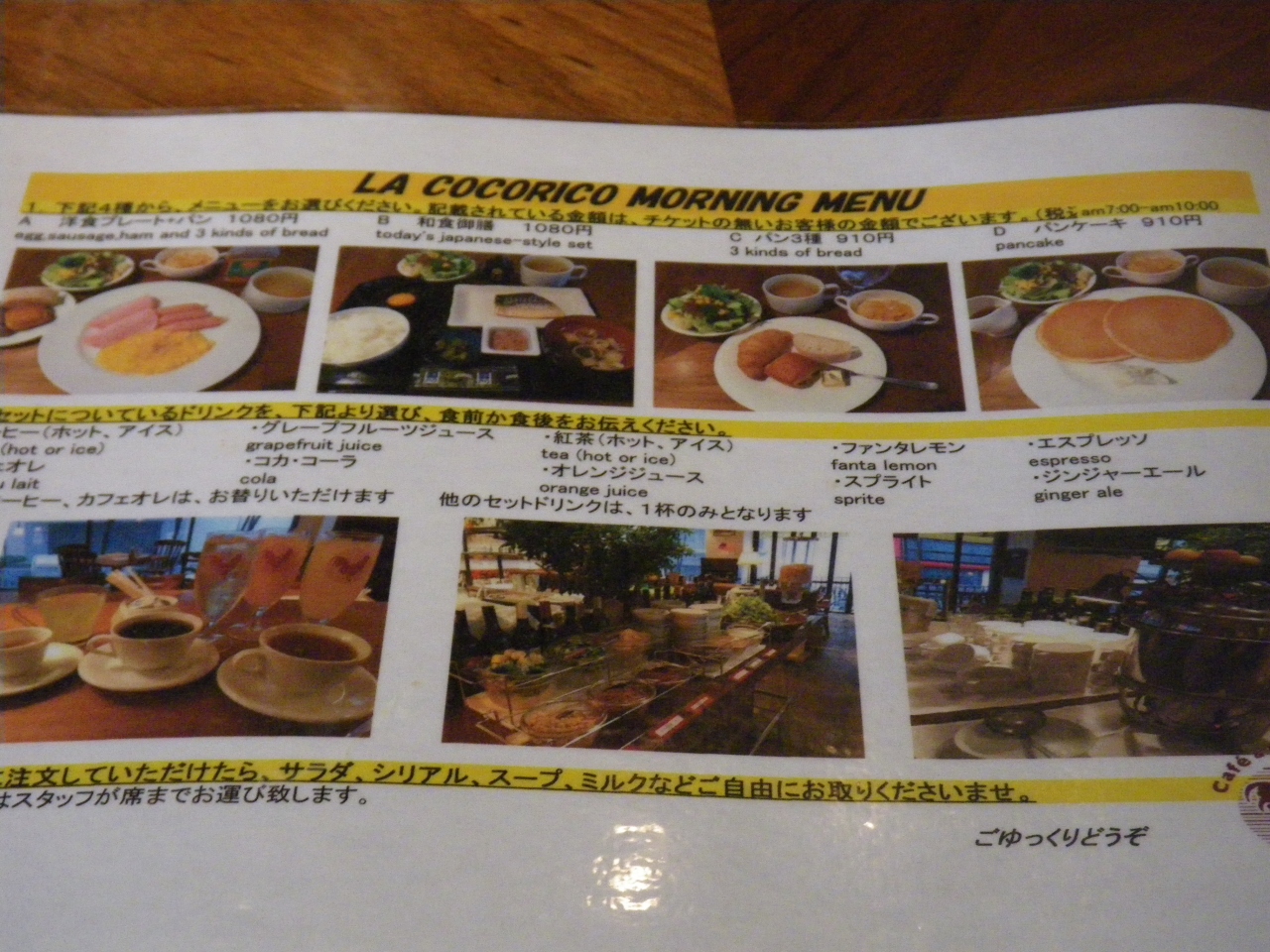 和食と洋食から選択、珈琲など一部飲み物を除き1ドリンク付きでした。パンメインのものもチョイス出来るみたいです。