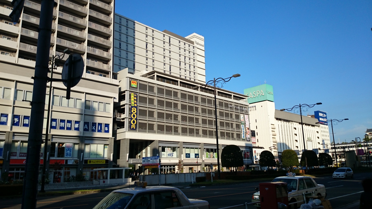 福山駅前のリッチモンドホテルに宿泊しました。南口から2分ぐらいの立地で、雨がふれば少し濡れますが、駅からすぐですので、問題ないと思います。