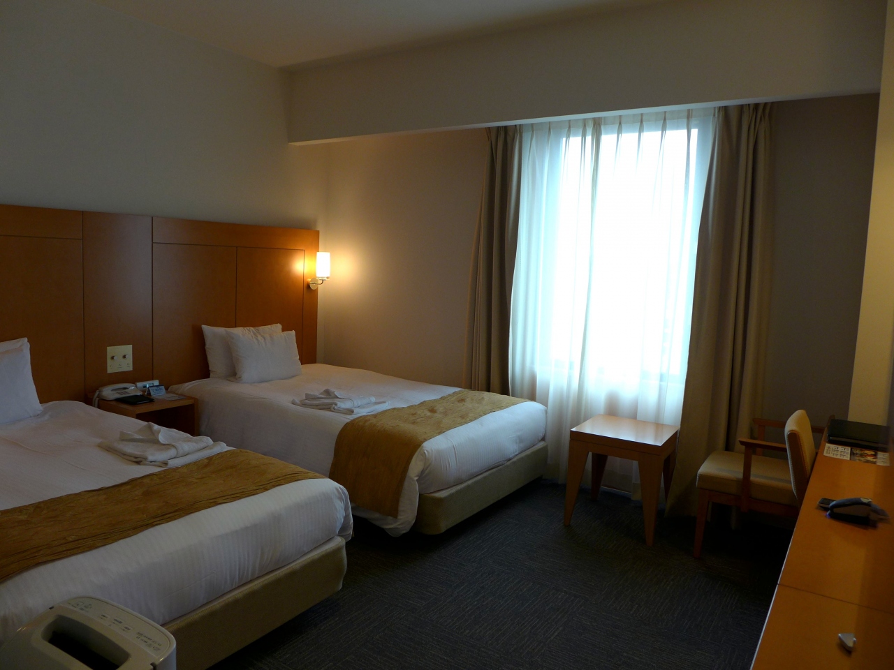 利用したエコノミーツイン 禁煙室は、110cm×200cmのベッドが2台と、充分な広さのあるデスクに、ウェブ環境が整って、充分快適に過ごせます。