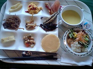 夕食時は中国人の団体宿泊客が多かったです。特にマナーの悪い人もおらず、不快になるような事もなく食事が済んで良かったと思いました。ただ広い会場内に大人数がいてバイキングも一苦労。食事は典型的なホテルバイキングで、自分で具材を選んで作る鶏飯に地方色があったくらいで、メニューと味はごく普通でした。