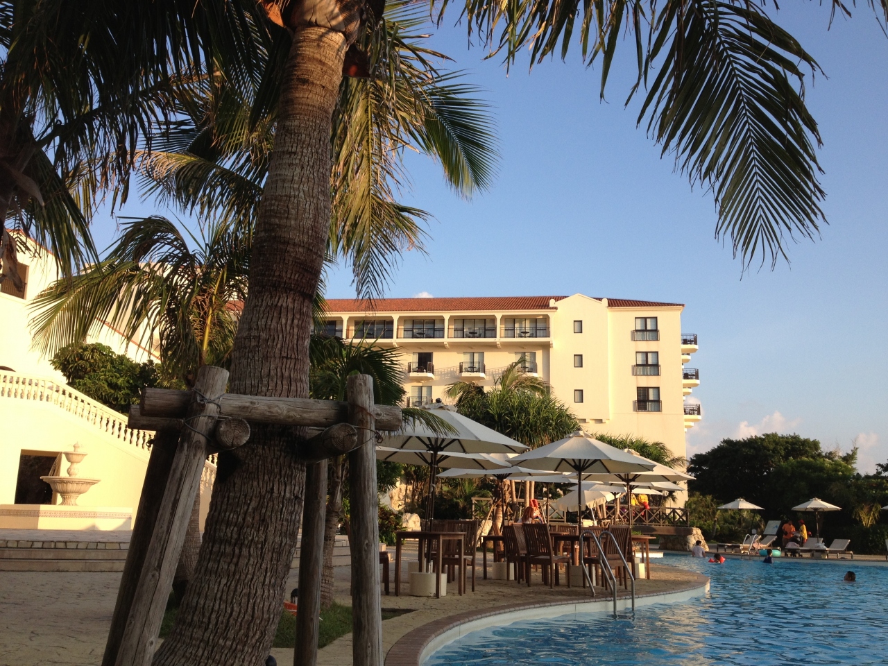 ホテルのサービスは、つかず離れずで、とてもよい距離感です。ただ、狙ってそうしている(外資のラグジュアリー系のように)のではなく、沖縄の方々の元々の人柄がうまく出ている・・・というふうに感じます。なので、レストランのサービスは、プロになりきれていないな~と思いました。スパニッシュバルのサービスの方はとてもよかったので、バーやカジュアルなレストランにはスタッフがマッチしているのでしょう。バルでは、ギターの演奏があり、予約なしで訪れたところ満席だったのですが、2回目の演奏時に携帯に電話をくださって、一人なのに、大きめのとても位置のよいテーブルへ案内してくださいました。こういうサービスはほんとうに満足感が高いです。