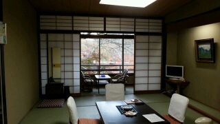 厳美渓そばの大型旅館のうちの1軒。本館?(フロント側の建物)は改築したようで新しいが、横に延びている方の建物はだいぶ年季が入っている。大浴場は露天風呂があるが、それほど広くもなく、やや古め。ただ、1泊2食でこの価格は満足か。朝食はバイキング。