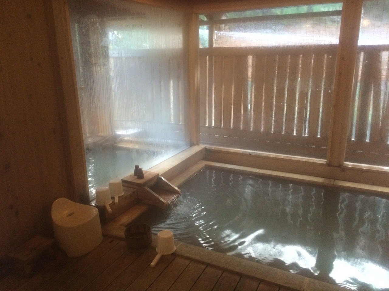 外側の半露天っぽい湯舟から観れる芹川の風景、程よい温度の炭酸泉が気に入っています。