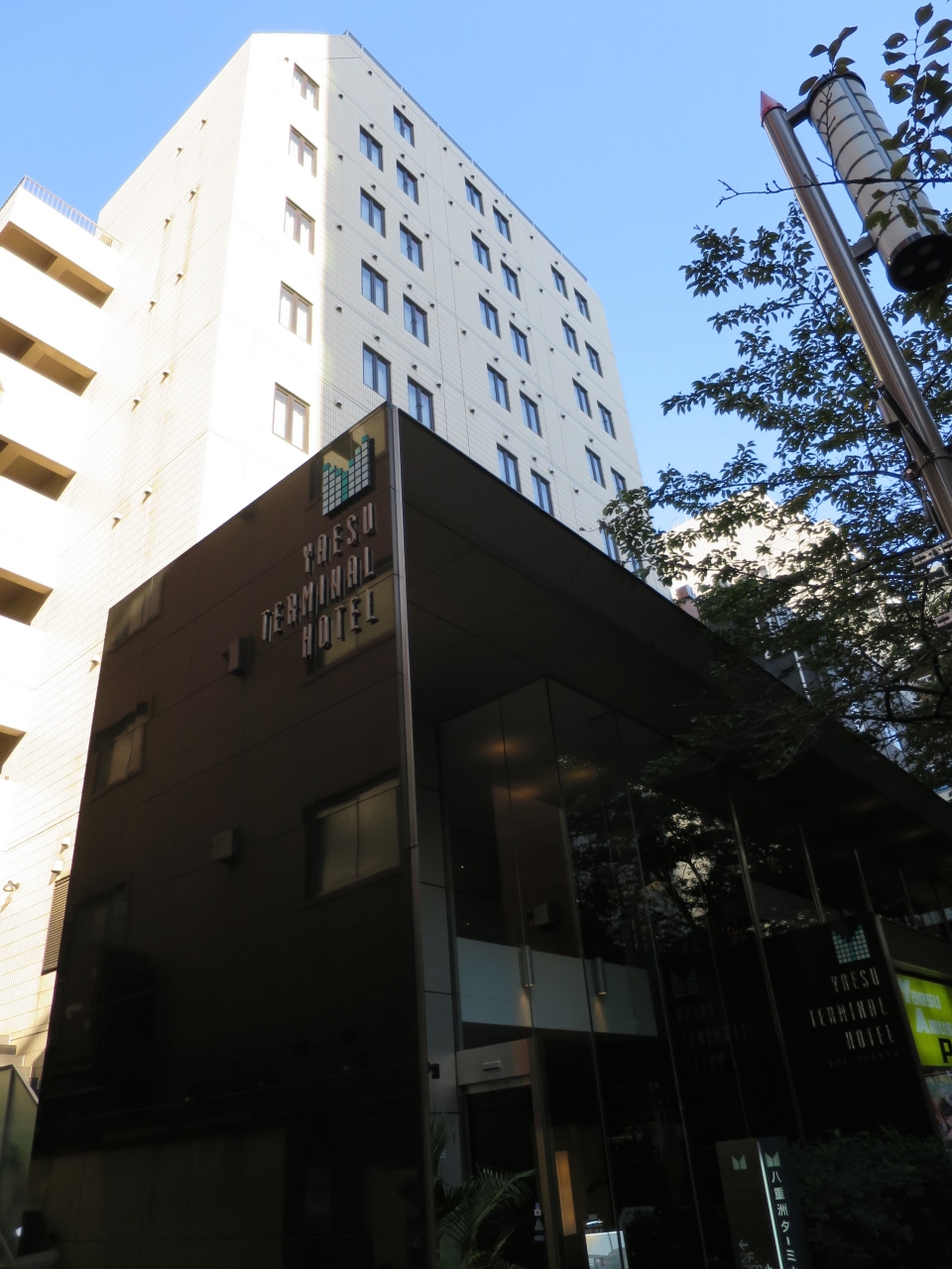 八重洲の繁華街の中にあります。周辺は雑然としていますが幸いこのホテル前の通りだけは並木もあったりして落ち着いた雰囲気。八重洲口に数あるビジネスホテルの中では最も静かな佇まいを感じさせるホテルではないでしょうか。