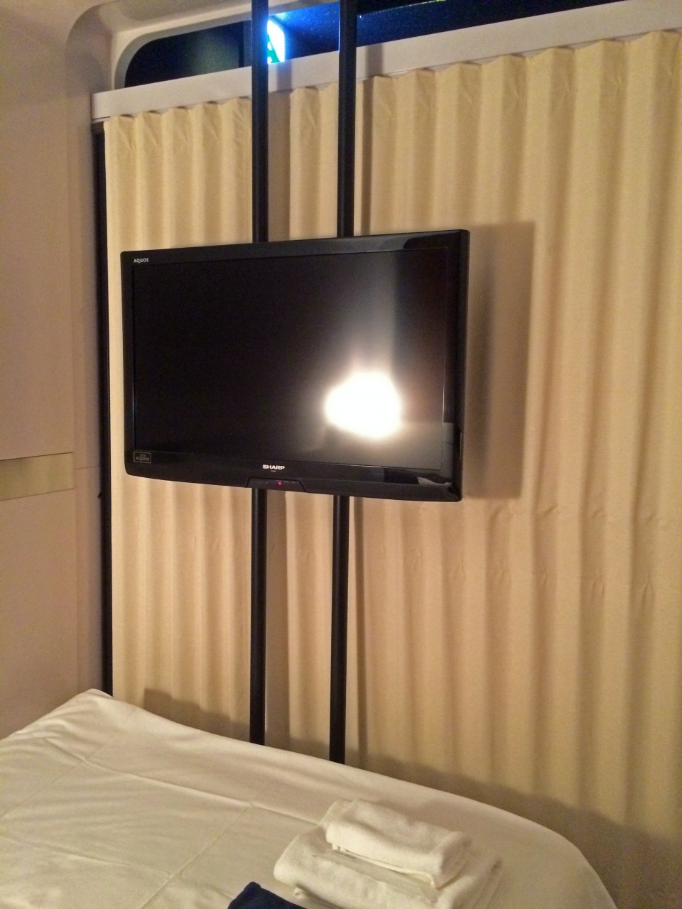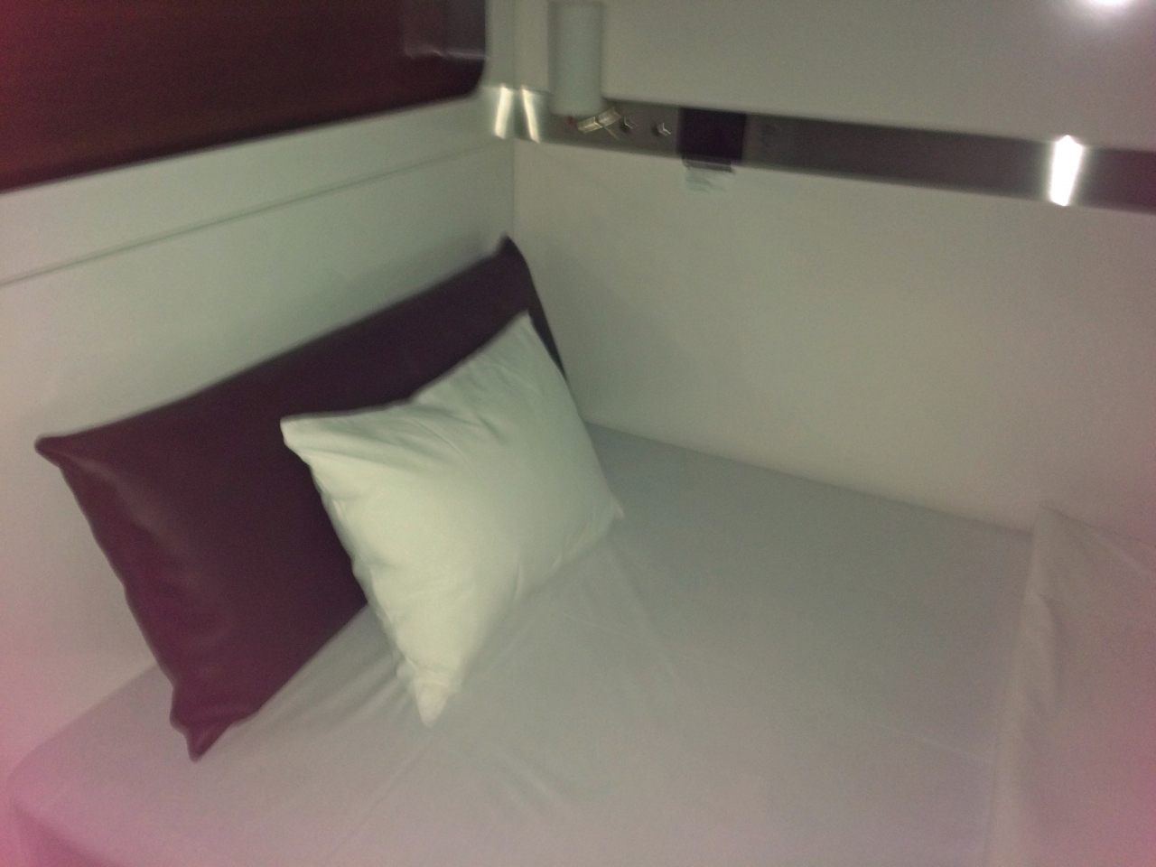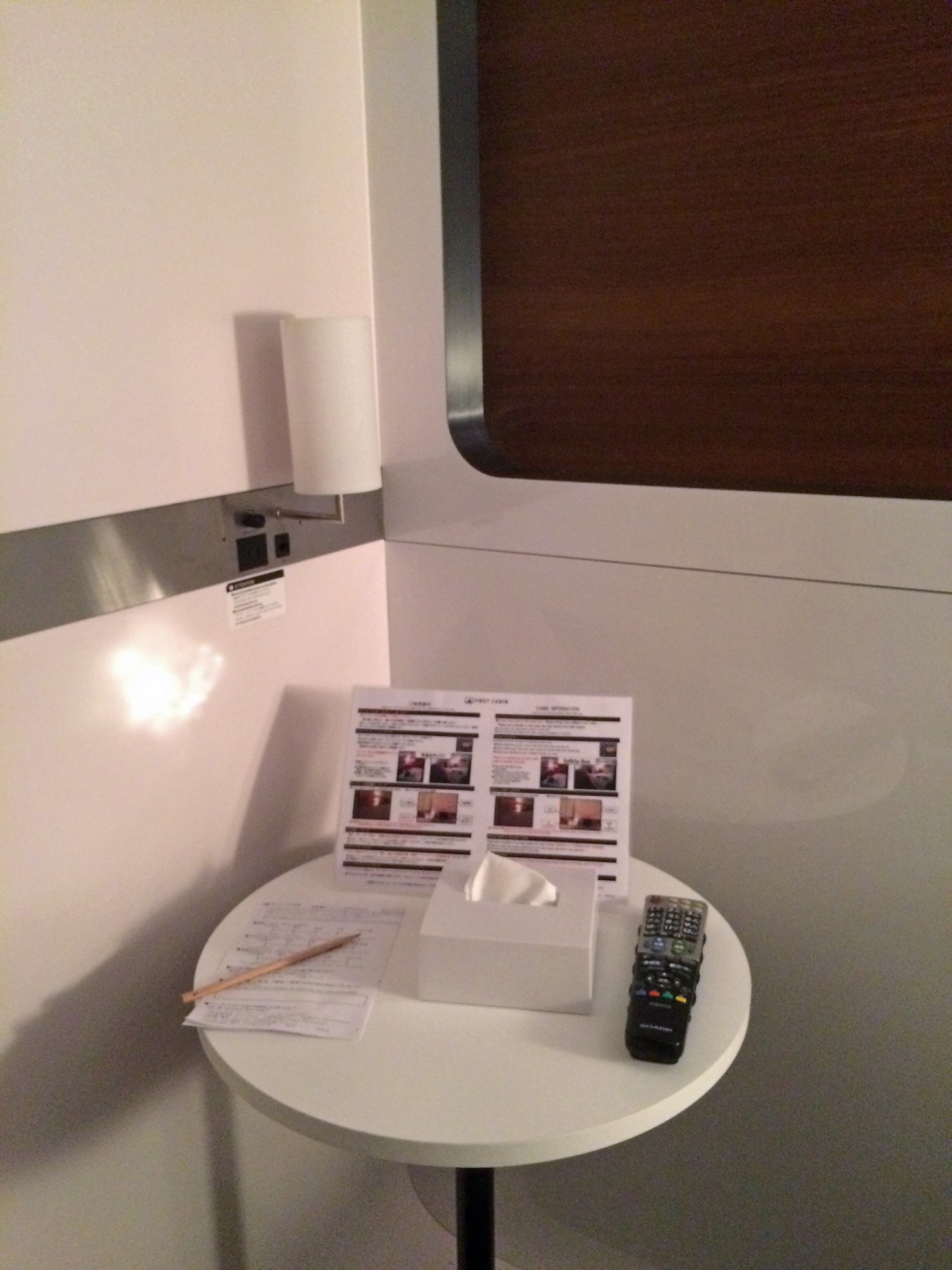ビジネスクラスはベッドだけのカプセルですが、ファーストクラスは、小テーブル、テレビがついています。