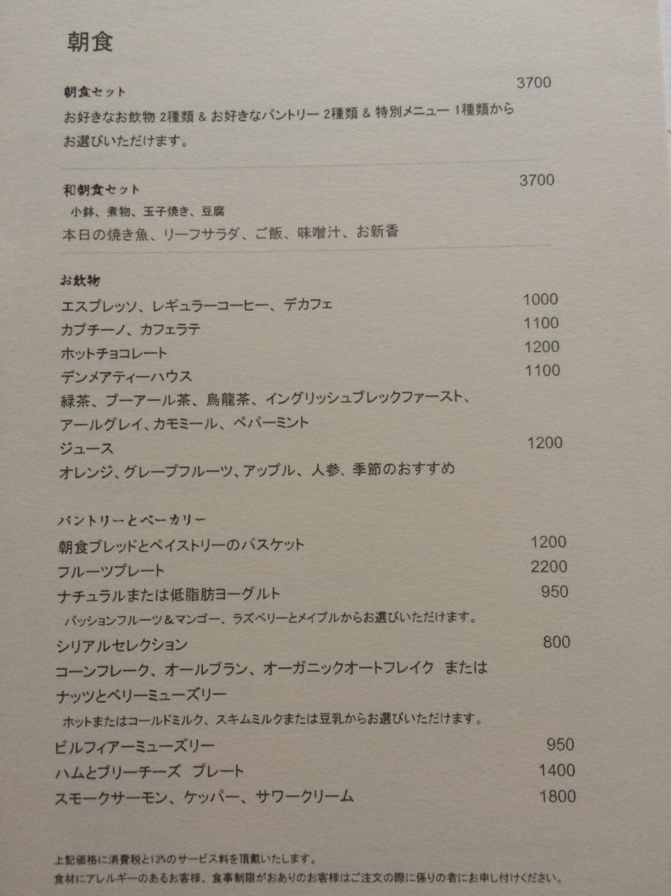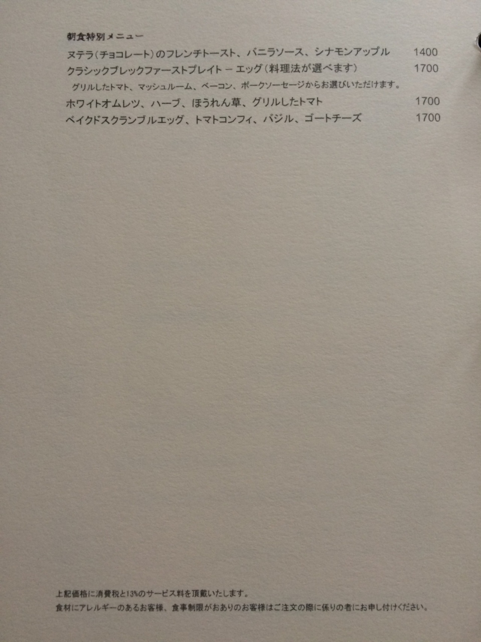 ・ルームサービスでいただきました。メニューは写真を参照してください。