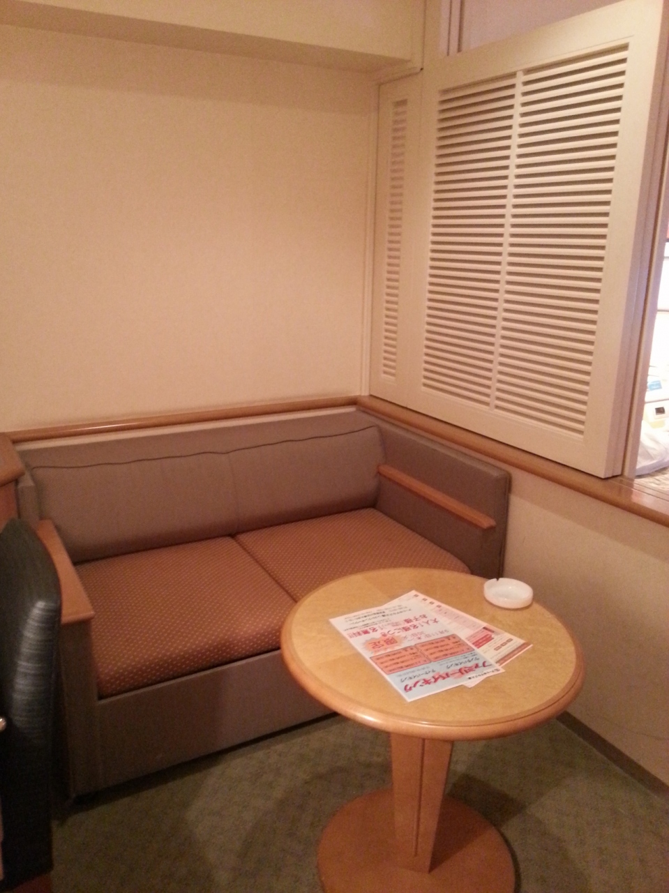 ツインルームにソファー、テーブルがある空間で、ひとりには贅沢すぎるお部屋でした。