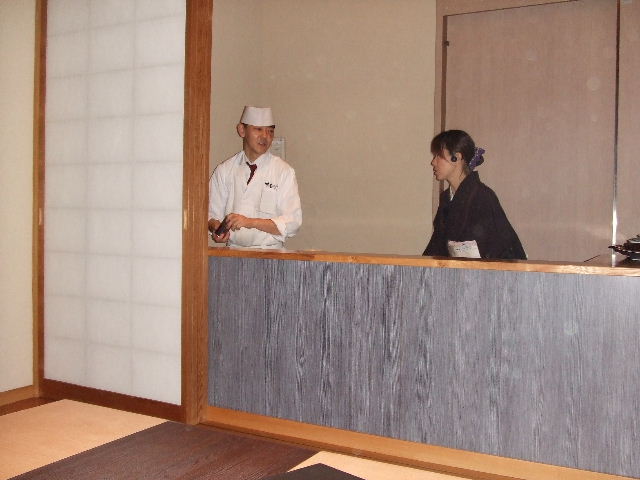 メインの料理だけ、板前が部屋に来て、備え付けのキッチンで調理をして出すという趣向。今回は黒鮑のステーキがそれ。まあ、落ち着いて食事をするにはいいのかも?