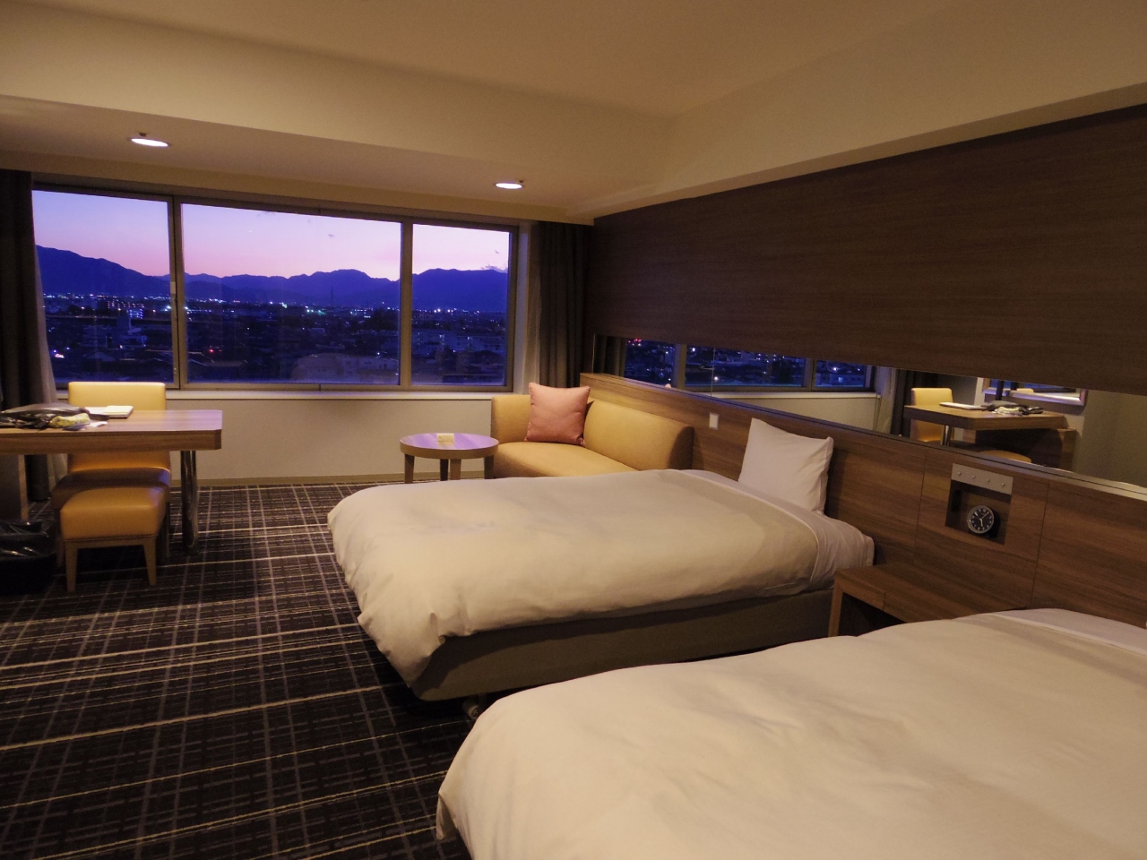 お部屋からは富士山も見えるし、南アルプスなのか、雪山も見えました。