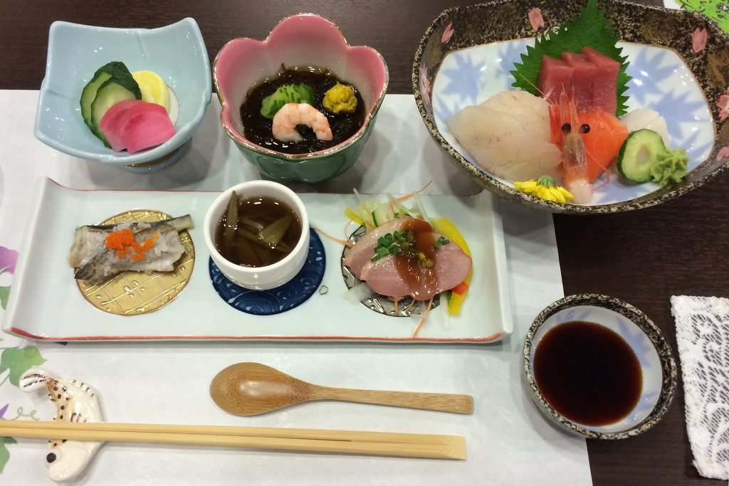 食事は当たりハズレあるらしいのですが、私が投宿した6月は地元漁港で漁が行われている時期でなかなか良質。「ウニのせ茶碗蒸し」や「タイの昆布締め」などは美味しかったです(天ぷらは少々調理レベルが低かったですが)。