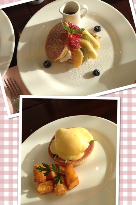 朝食はレストランでとりましたが、ゆっくりしたくて、エッグベネディクトとパンケーキをラウンジでいただきました。