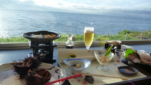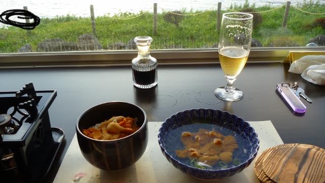 鴛泊港から送迎サービスを利用しチェックイン。海沿いの立地のため客室からの眺望は抜群。夕食はホテルの名前に恥じないウニ尽くしの物。一度にこれだけの量のウニをいただけることはなかなかないだろうというくらいのウニをいろいろな調理法で味わうことができた。客室は和洋室だったので広く快適に過ごせた。風呂は温泉ではないが利尻昆布を浮かべた珍しいもの。ただし広さはないので他の入浴客があまりいない時間帯に入れれば快適。