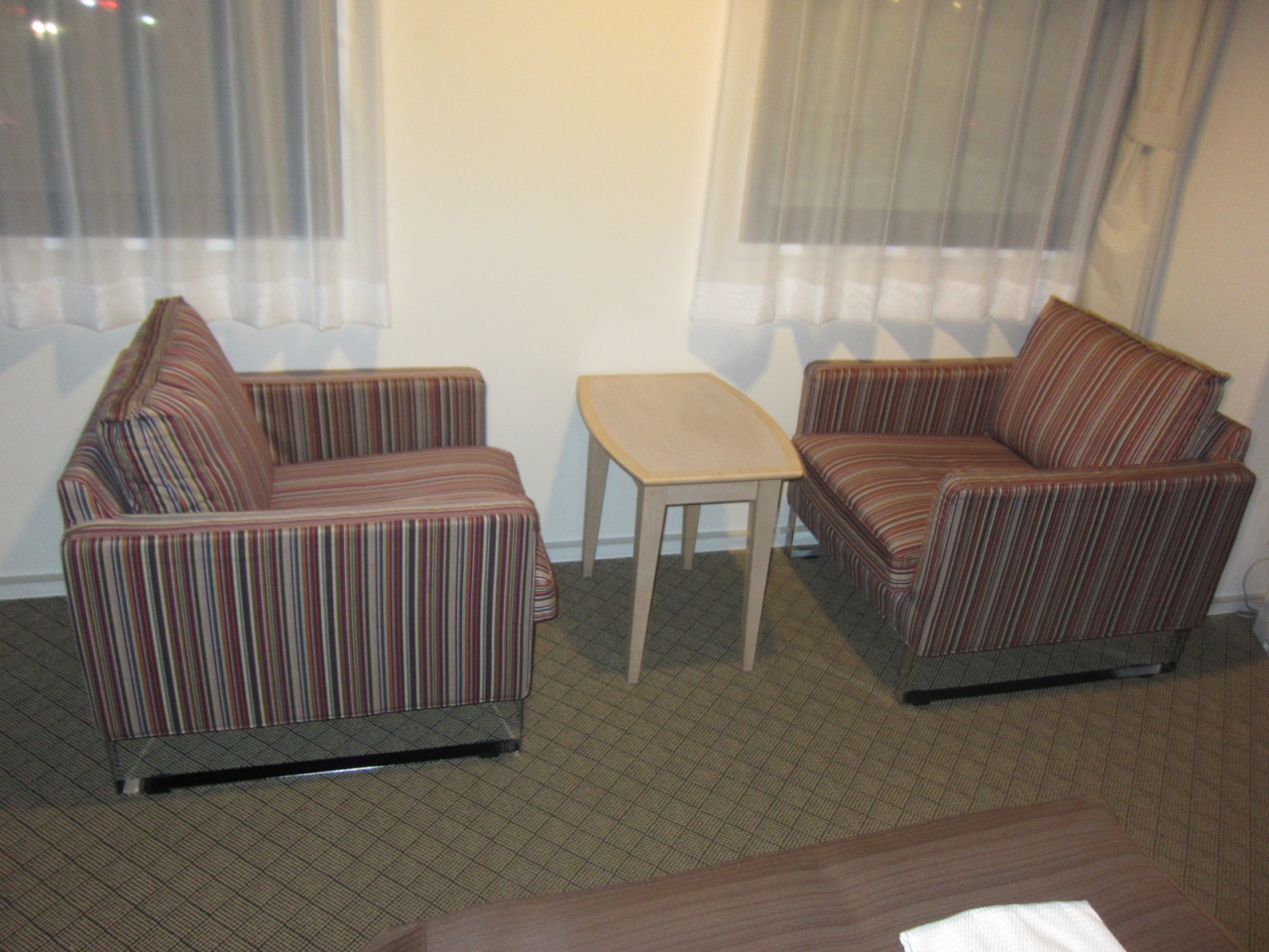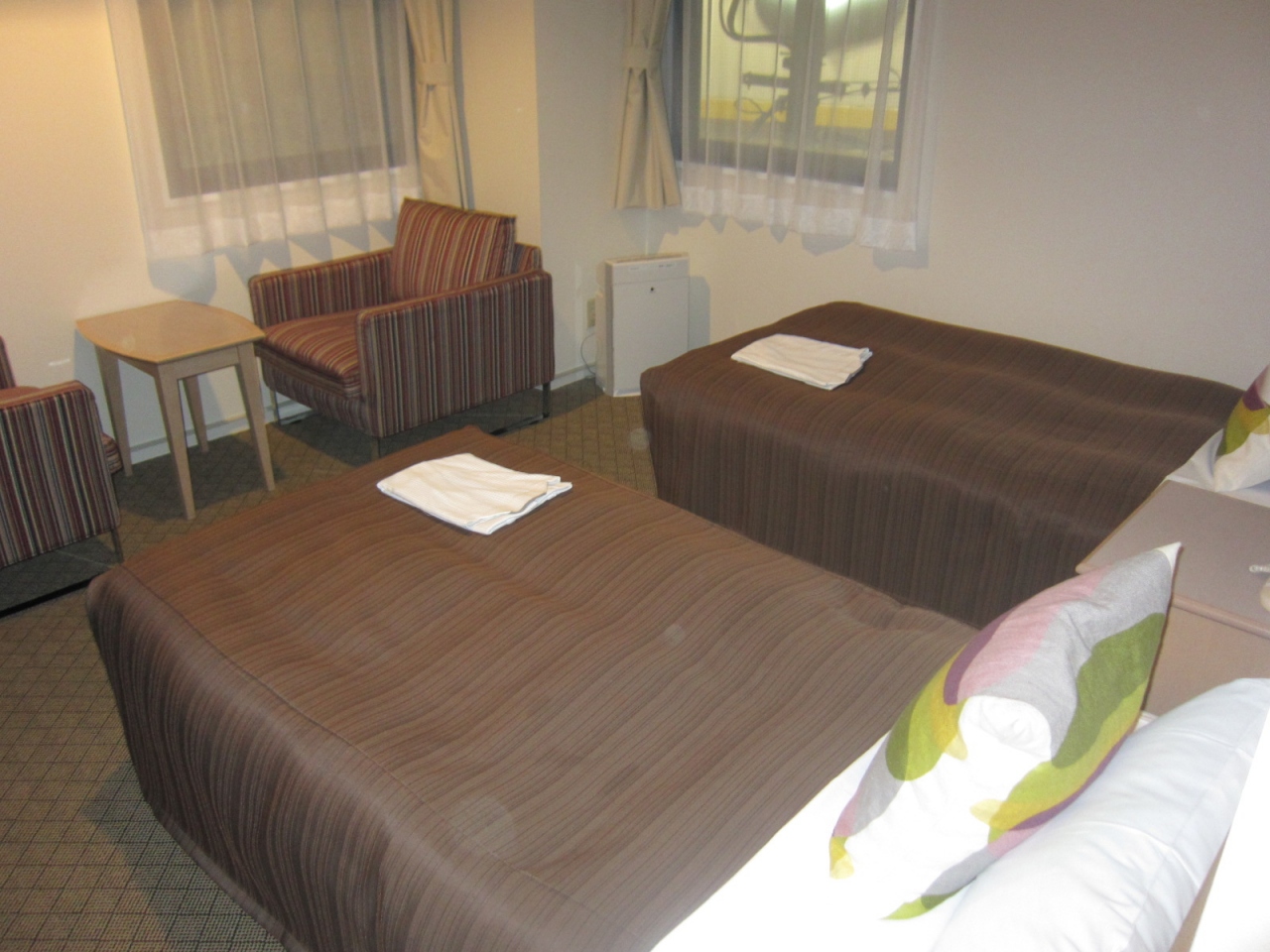 エンゼルカントリークラブを2日間プレーするために近場の宿泊先として初めて利用しました。禁煙ツインルームでしたが広くて綺麗でした。朝食はビュッフェスタイルでしたが、品数の多さと美味しさに満足しました。出張先でビジネスホテルを国内各地で利用していますが、これだけの品数の朝食は有りませんでした。