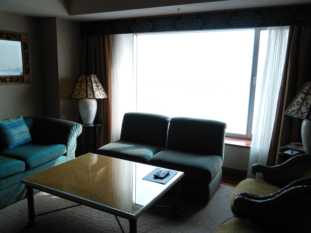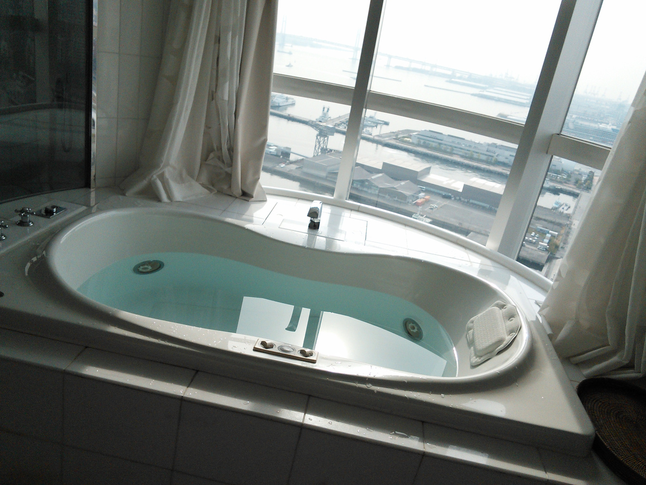 予約した部屋はオーシャンビューのスタンダードなタイプのはずでしたが、予約したサイトの手違いで、ツーランク上の部屋に同じ料金で泊まることが出来て、とてもラッキーでした。部屋からはベイブリッジとコスモワールドの観覧車が見えて、妻と素敵な一夜を過ごせましまた。