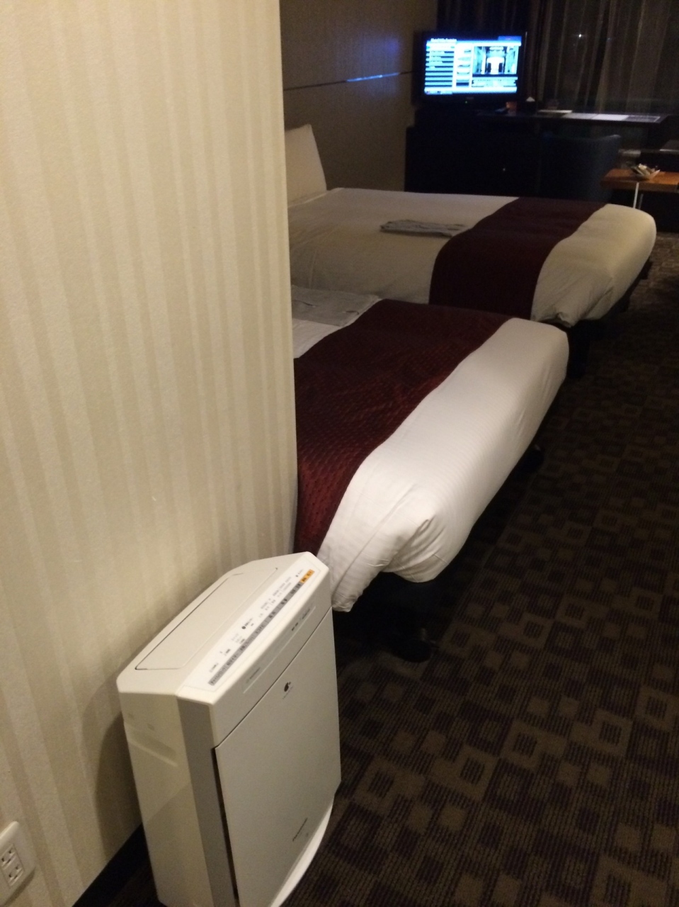 場所は行きにくく、一度ホテルに入ると出掛けるのが面倒ですが、周りの建物にタリーズ、スタバやコンビニ。飲食店が揃っているので、必要なものは、揃います。室内も広く清潔で、加湿機能付き空気清浄機が備え付けられています。