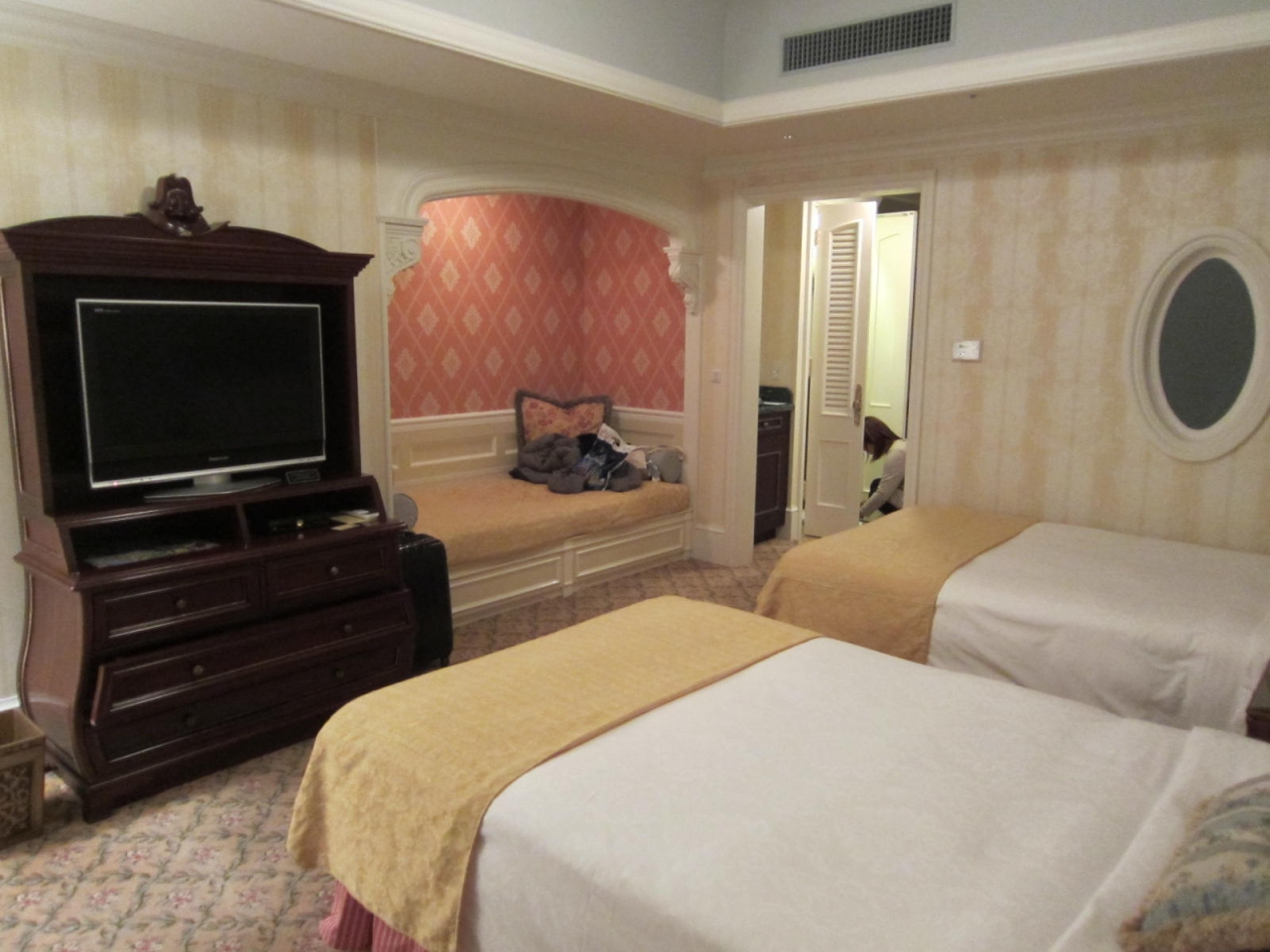 部屋はスーペリアアルコーブタイプ。ベットの他にをくりぬいたように設置された大き目のソファというかベットになりそうなスペースがある部屋です。