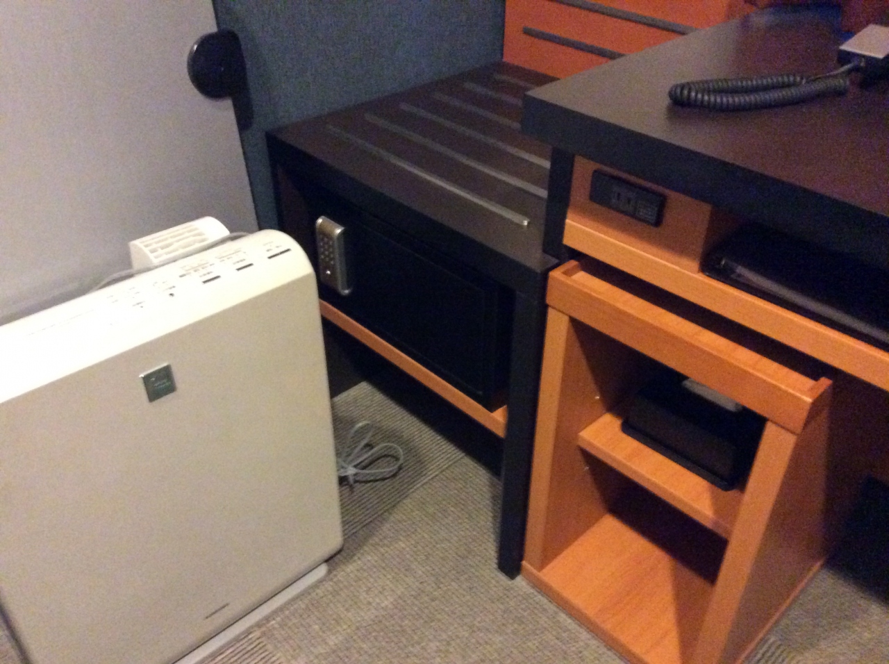 装備品は、一般的な物に加え、セフティボックス、ミニキッチン、電子レンジまでありました。コンセントも便利なところについています。