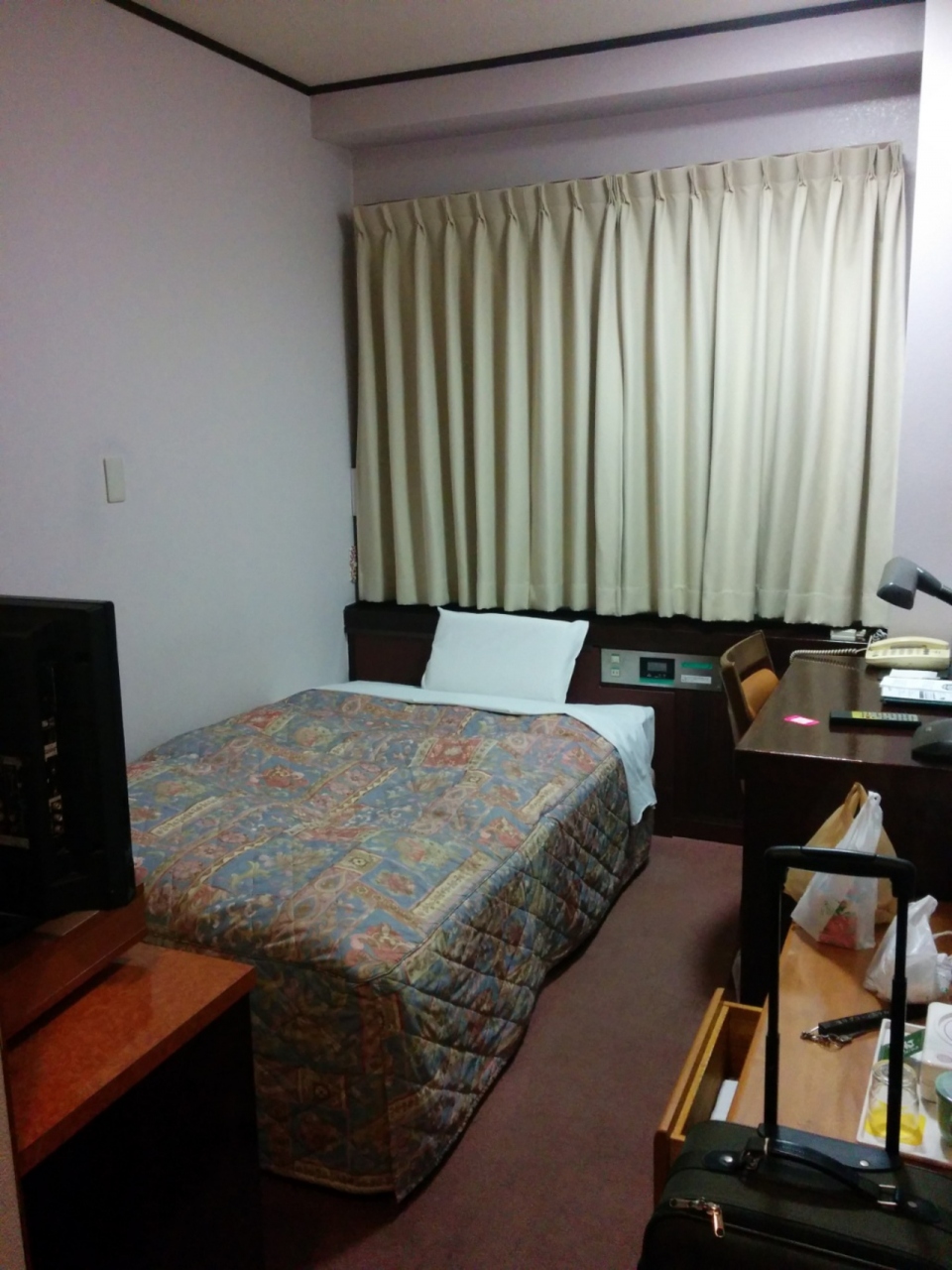諫早駅から、徒歩10分くらい。設備もちと古いような。部屋も、やはりという感じなんです。4200円なんで、まあ、ビジネスでも安いのでしょうが。